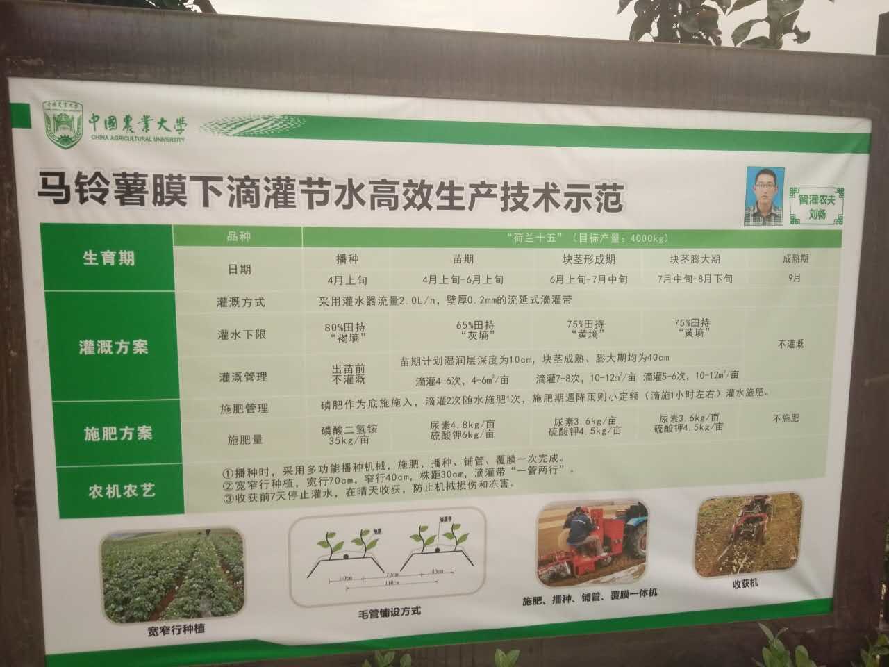 中国农业大学马铃薯膜下滴灌节水高效生产技术示范